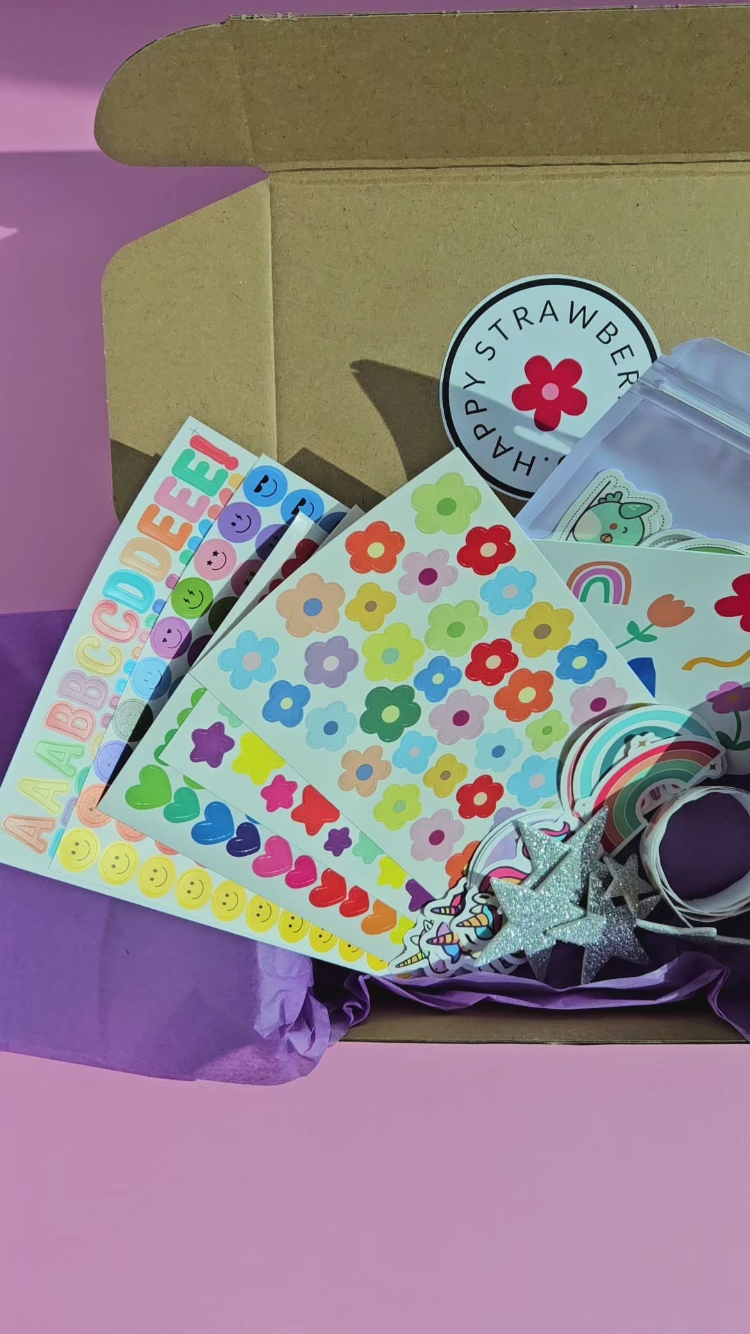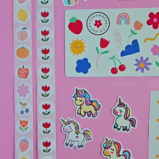 Each box is filled with the same types of stickers, though the exact designs may vary — making every box a unique surprise!